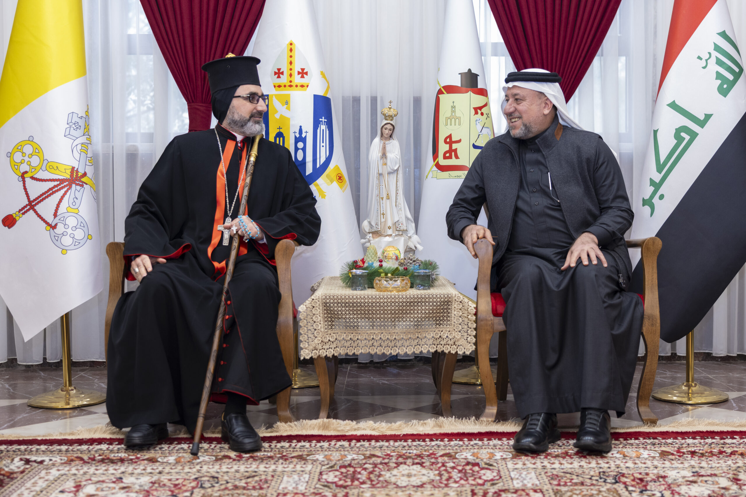 جانب من زيارة الشيخ الخنجر إلى جامع ملوكي في العامرية وسط بغداد لأداء صلاة العصر