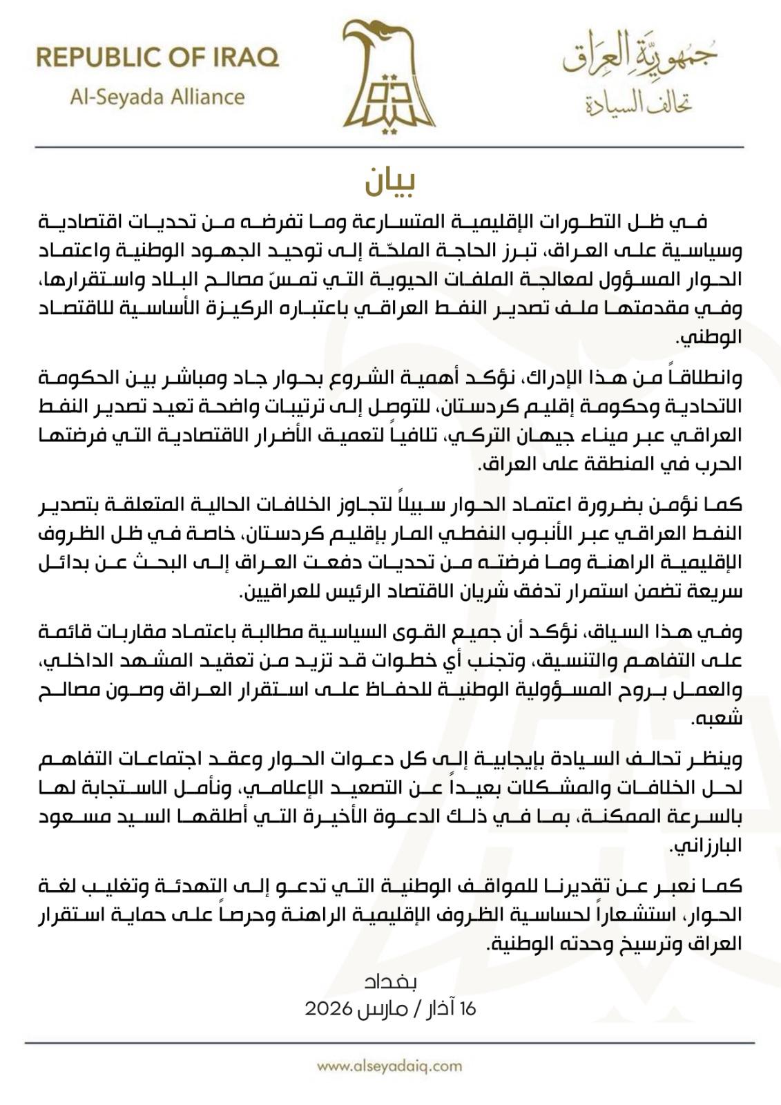 رئيس تحالف السيادة يُعزّي المرجع الأعلى السيد السيستاني بوفاة شقيقه