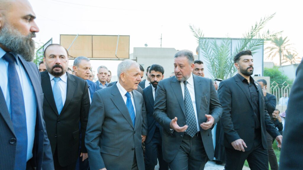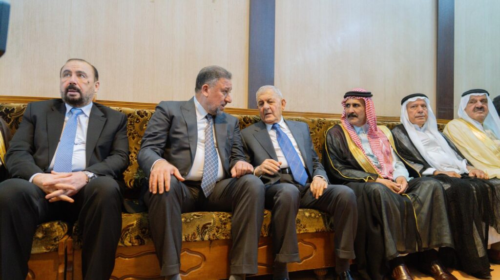 استقبل رئيس تحالف السيادة الشيخ خميس الخنجر، في مجلس العزاء الرسمي الذي أُقيم لروح الشهيد صفاء المشهداني، في جامع عمر المختار بالعاصمة بغداد، اليوم الجمعة، فخامة رئيس الجمهورية عبد اللطيف رشيد، ودولةَ رئيس الوزراء محمد شياع السوداني، وعدداً من السادة الوزراء ورؤساء الأجهزة والهيئات والمستشارين والقادة الأمنيين، إلى جانب عدد من رؤساء البعثات الدبلوماسية العربية والأجنبية العاملة في بغداد، وجمع من الشخصيات السياسية والاجتماعية والدينية.
