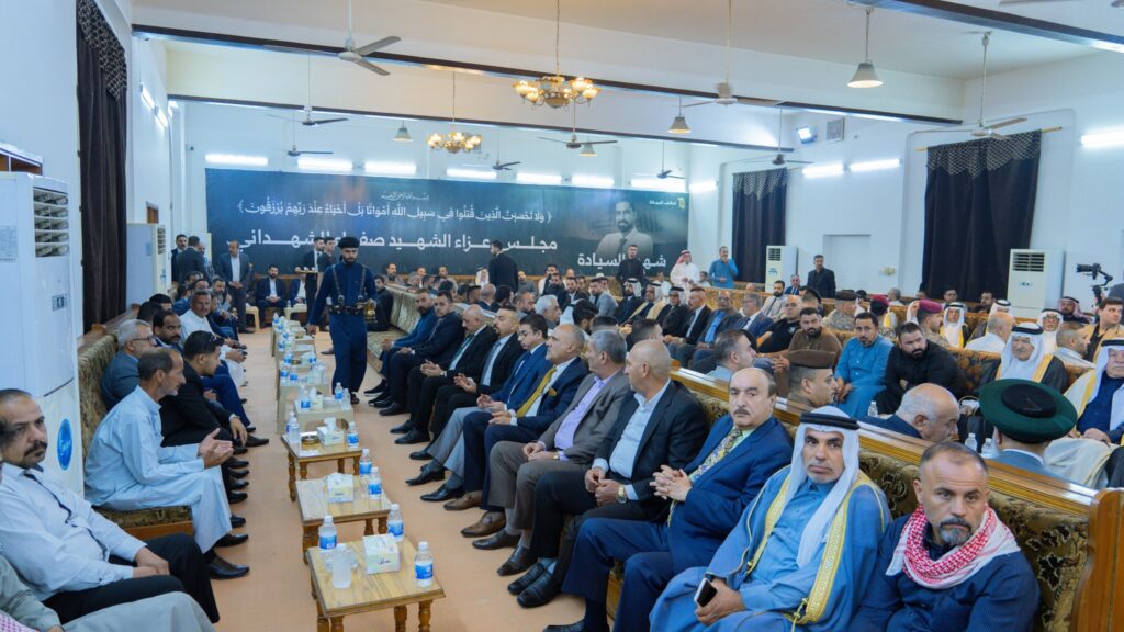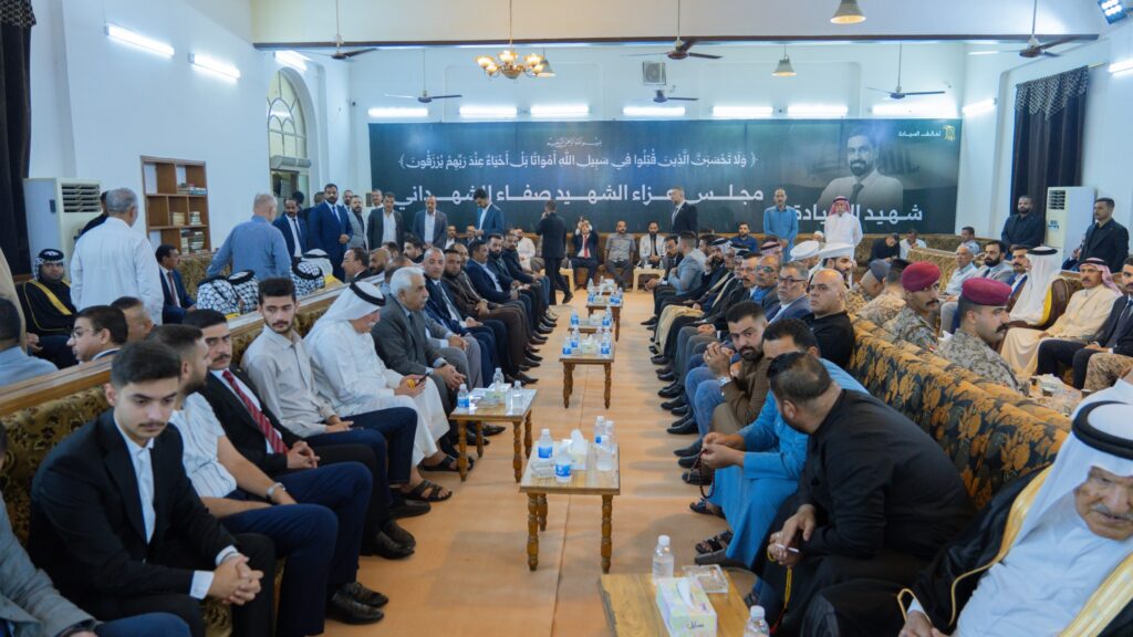 واختُتم مجلس العزاء بكلماتٍ مؤثرة عبرت عن الحزن والأسى لفقدان الشهيد، واستذكار مواقفه الوطنية ومسيرته في خدمة أبناء شعبه، فيما شهد المجلس حضوراً واسعاً من أبناء العشائر، ووجهاء وأعيان وفضلاء من مختلف مناطق ومحافظات العراق، ورفاق الشهيد، الذين أكدوا استمرارهم على نهجه في الدفاع عن كرامة الإنسان العراقي وحقه في العدل والأمان.