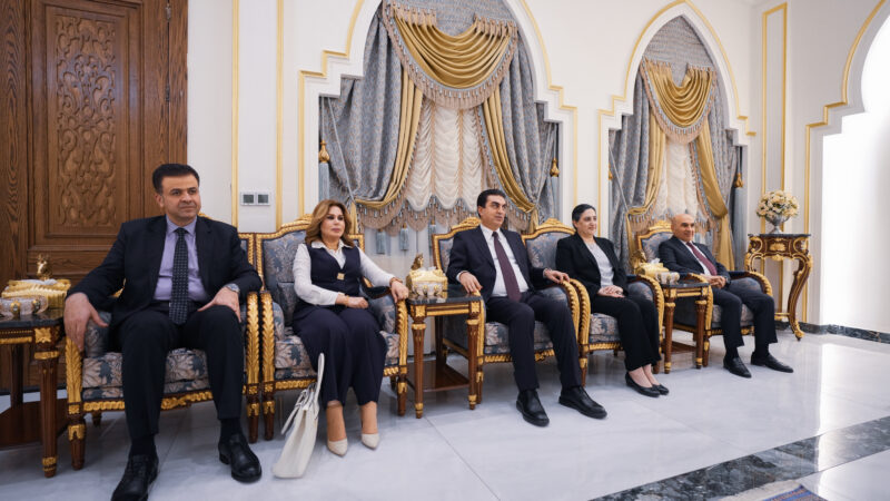 استقبل رئيس تحالف السيادة الشيخ سرمد الخنجر، وفد الحزب الديمقراطي الكردستاني برئاسة نائب رئيس مجلس الوزراء وزير الخارجية الدكتور فؤاد حسين، وبحضور عدد من قيادات ونواب تحالف السيادة، حيث جرى خلال اللقاء بحث تطورات المشهد السياسي في البلاد، ومناقشة الاستحقاقات الوطنية المقبلة وفق التوقيتات الدستورية المحددة.